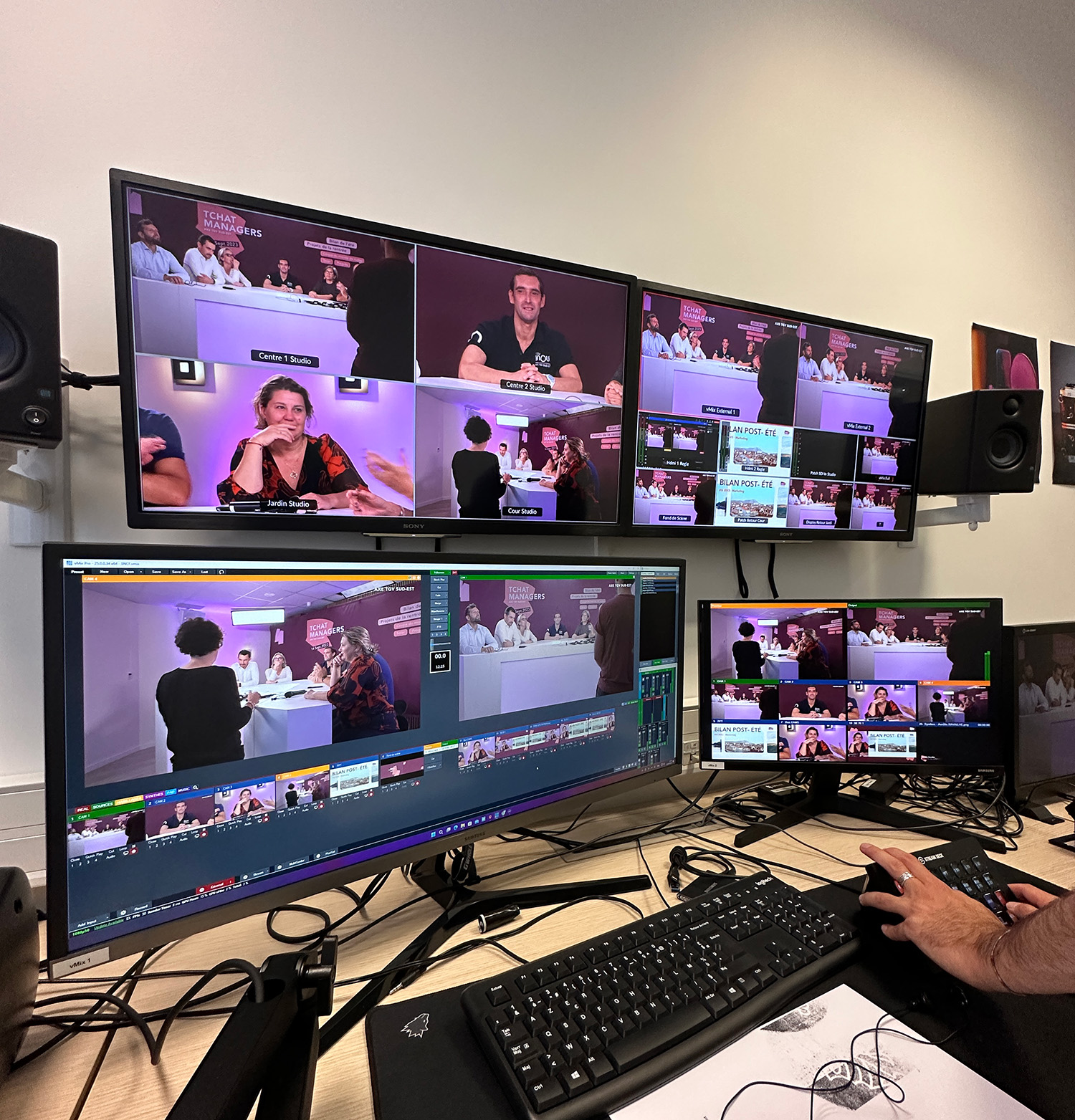 Pour des webinaires qui engagent, le mieux est de faire appel à des professionnels. Ils vous garantissent une organisation millimétrée, un accompagnement sur mesure et du matériel de pointe qui vous permet de vous concentrer uniquement sur les interventions en plateau. Sans oublier la gestion du lieu de tournage, des animations de l’audience, le travail sur la scénographie et l’habillage graphique qui sont indispensables pour optimiser une expérience participants.